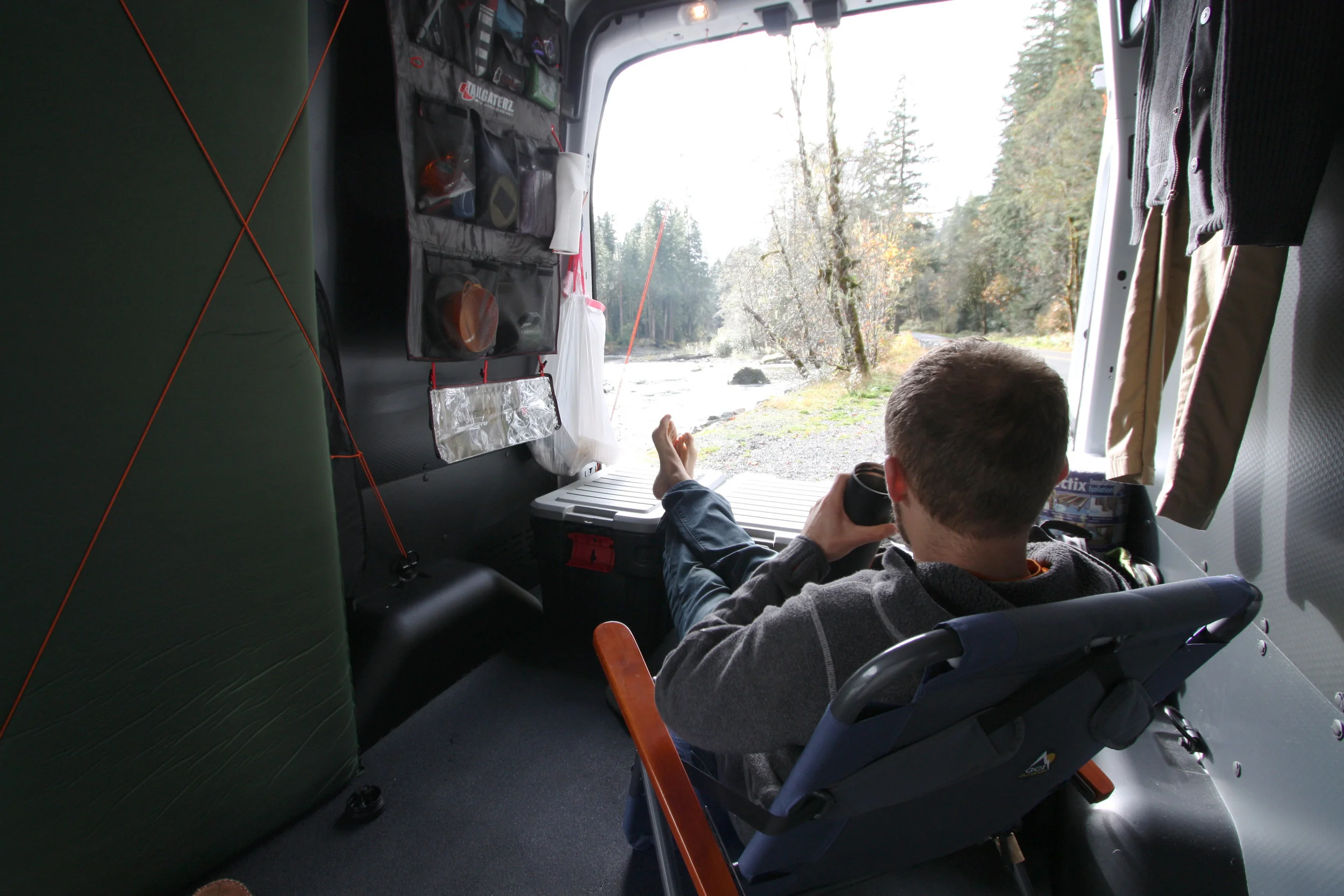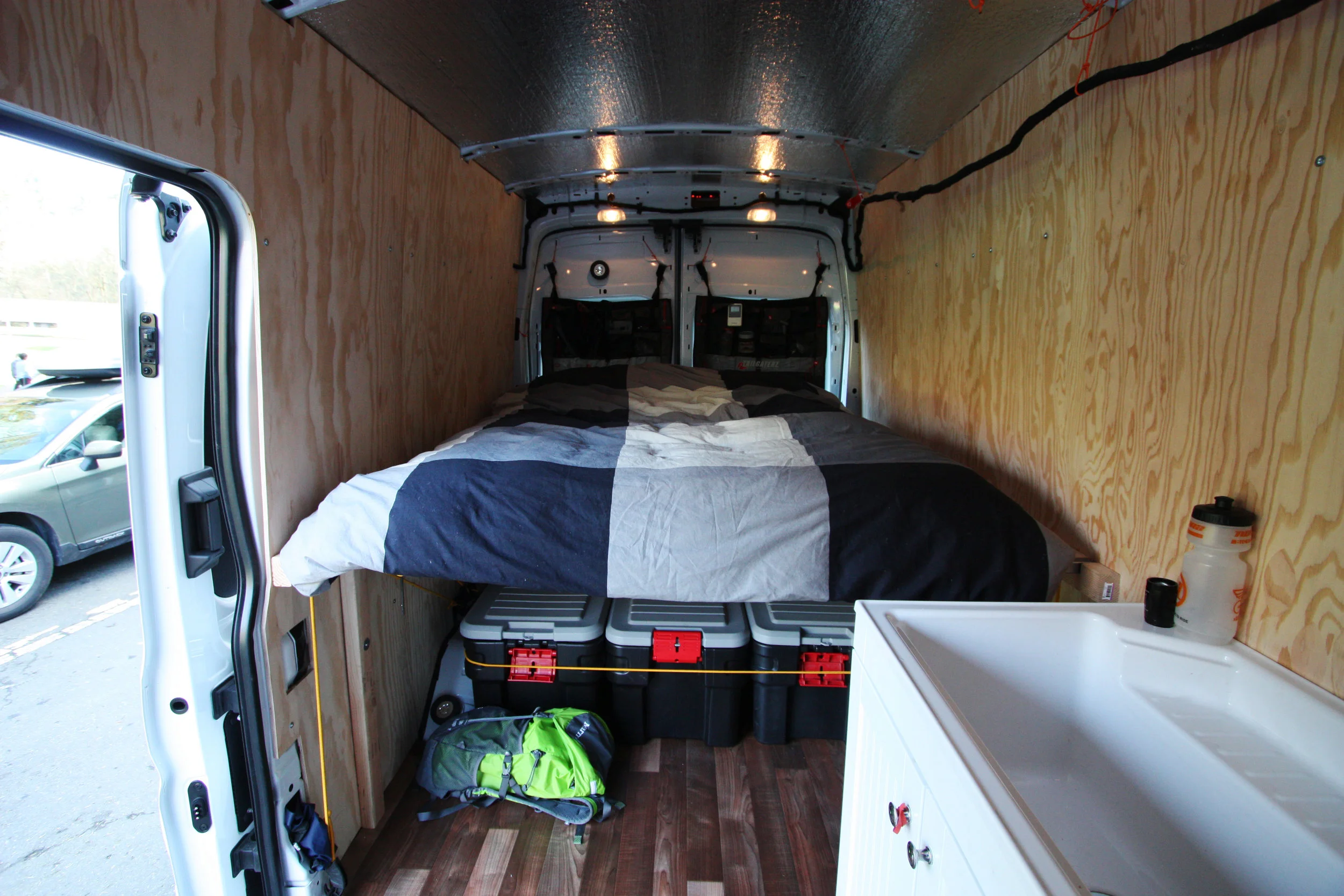 In the most recent edition of ROVA, we profiled a couple, Laura and Shane, who bought themselves a Ford transit van and got busy building it out into their dream home on wheels—now known as Vanna White. We didn't have quite enough space to show all of the images in print, so here are some before and after shots that show you how much work they actually put into this sweet van conversion.
